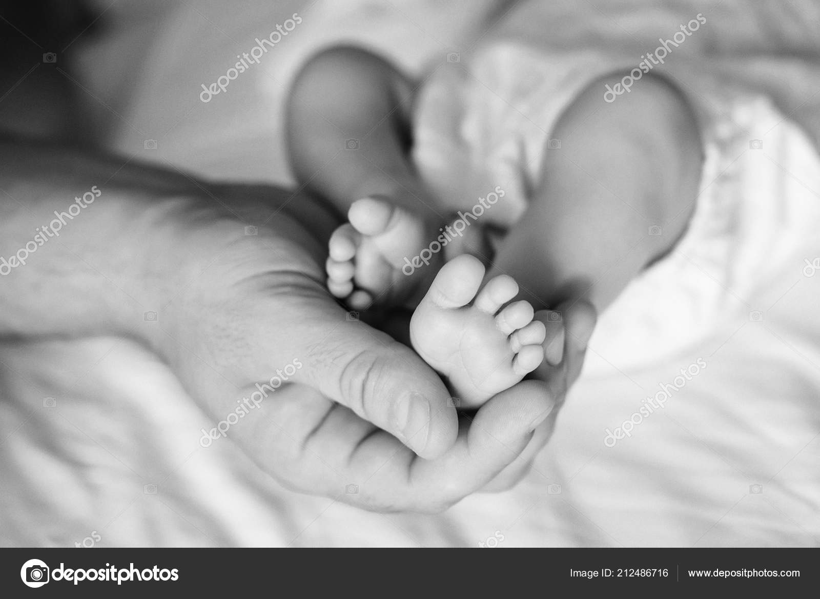 Pés Bebé Nas Mãos Pai Conceito Família Feliz Bela Imagem — Stock Photo © Volurol #212486716